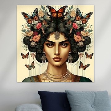 Frauenporträt mit Schmetterlingen und Blumen Jessica Berendsen