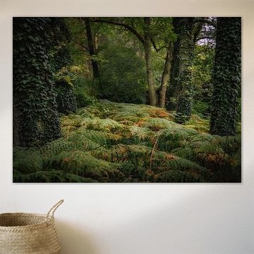Sonnenstrahlen grüßen die Farne im Wald. Els Oomis