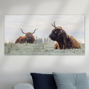Schottischer Highlander Vater und Mutter mit Kalb Dirk van Egmond