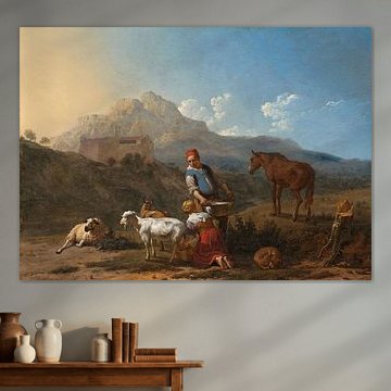 Ein kleines Mädchen mit einem Welpen im Arm, Govert Flinck