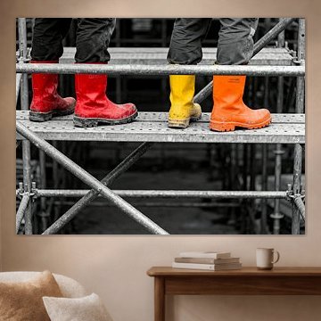 Werken voor voor bedrijfsruimtes in de bouw- en installatiesector: aannemersbedrijven, timmerwerkplaatsen, meubelmakerijen, interieurbouwers, renovatiebedrijven, metaalbewerkingsbedrijven, loodgietersbedrijven, elektrotechnische bedrijven, onderhoudsbedrijven, garages, doe-het-zelfzaken, en technische diensten. Ook geschikt voor kantoren van projectontwikkelaars, architectenbureaus en bouwmanagementbedrijven die hun verbinding met ambachtelijk werk willen benadrukken.