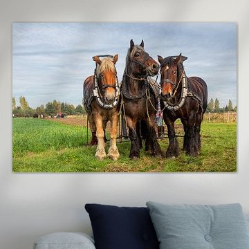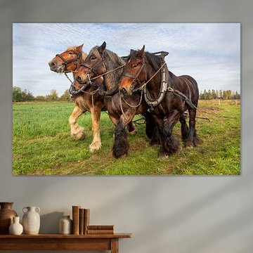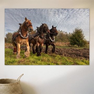 17. Stoppelfeld traditionelles Pflügen mit Zugpferden