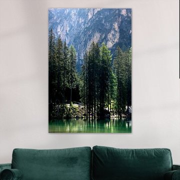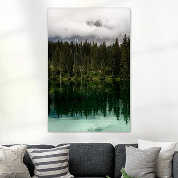 Kleurrijke landschappen gefotografeerd in de beroemde Dolomieten in Noord-Italië. Sfeervolle meren hoog in de bergen. Mistige landschappen.
