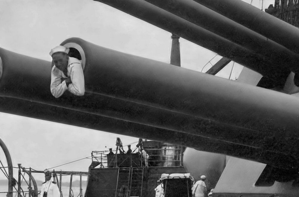 Marineschiff aus dem Ersten Weltkrieg. Die Basis des Krieges ist hier mit einer Reihe von Matrosen in den Rohren. Das amerikanische Kriegsschiff ist hier in Schwarzweiß dargestellt.