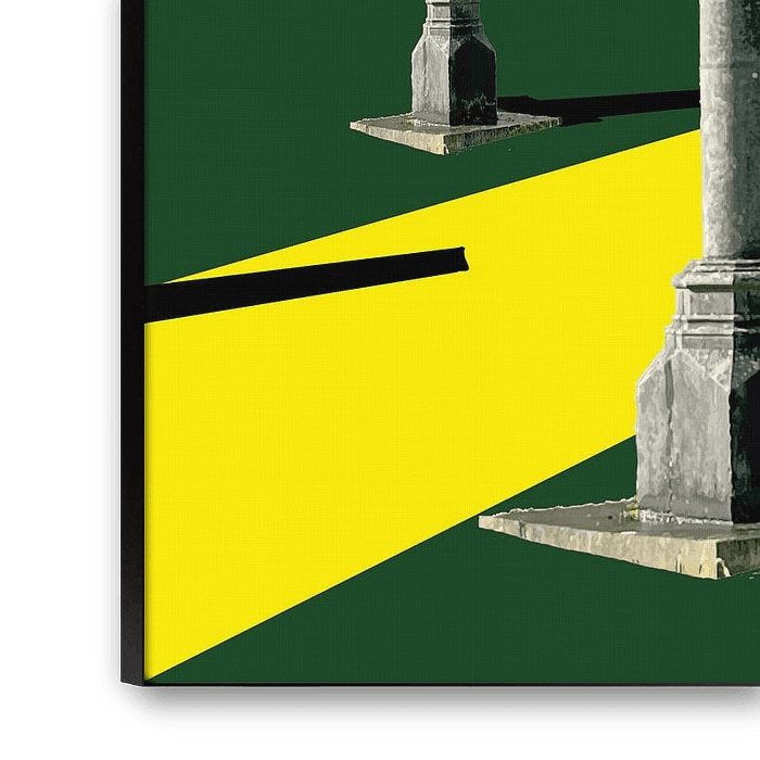 Dieses digitale Kunstwerk zeigt eine bezaubernde nächtliche Landschaft, in der Stille und Symbolik zusammenkommen. Inspiriert von einer einsamen Säule in Amelisweerd, bildet das Bild eine visuelle Meditation über die Phrase "Alle Wege führen nach Rom". Unter einem tiefen Sternenhimmel schlängelt sich ein leuchtend gelber Sandweg von der linken unteren Ecke der Skulptur bis zum fernen Horizont. Der Weg, der auf geheimnisvolle Weise von einem unsichtbaren Mond beleuchtet wird, führt durch eine weite, gleichmäßig dunkelgrüne Rasenfläche, die sich zu beiden Seiten erstreckt und der Szene eine heitere, fast zeitlose Atmosphäre verleiht.