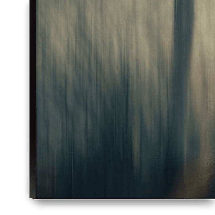 Wenn man dieses Werk betrachtet, wird der Blick sofort in die Tiefe gezogen. Man sieht einen einsamen Radfahrer auf einem Waldweg, der in Richtung des Lichts davonfährt. Die Bäume zu beiden Seiten bilden einen fast kathedralenartigen Bogen, sind aber aufgrund der verwendeten Technik nicht scharf und statisch. Sie haben sich in weiche,…