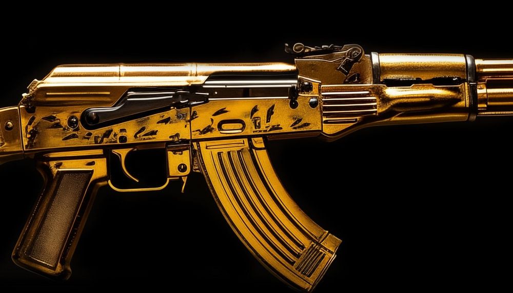 Das goldene Panoramagemälde AK 47 Kalashnikov ist eine luxuriöse Ergänzung für jeden Raum. Mit seinem schönen und stilvollen Aussehen ist es ein echter Blickfang. Die brillanten Farben und das ungewöhnliche Design machen dieses Kunstwerk zu 100% einzigartig und originell. Es ist der perfekte Fotodruck, um Ihr Interieur zu vervollständigen.