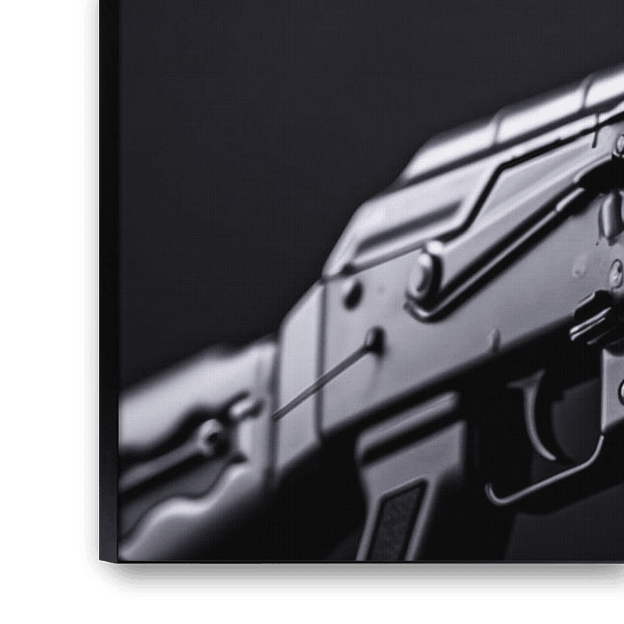 AK 47 Kalaschnikow-Panorama-Gemälde in Nahaufnahme, das eine luxuriöse Ergänzung für jeden Raum darstellt. Mit seinem schönen und stilvollen Aussehen ist es ein echter Blickfang. Die brillanten Farben und das ungewöhnliche Design machen dieses Kunstwerk zu 100% einzigartig und originell. Es ist der perfekte Fotodruck, um Ihr Interieur zu vervollständigen.