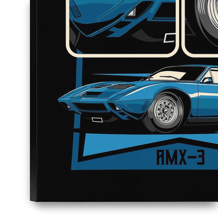 Bestelle diese Illustration AMC AMX/3 Amerikanischer Sportwagen von Adam Khabibi als Reproduktion auf Leinwand, Alu-Dibond, als Poster, Fototapete oder Acrylglasbild.