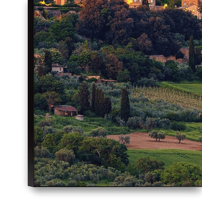 Bestelle dieses Landschafts-Wandbild Abendansicht von Pienza, Italien von Adelheid Smitt als Reproduktion auf Leinwand, Alu-Dibond, als Poster, Fototapete oder Acrylglasbild.