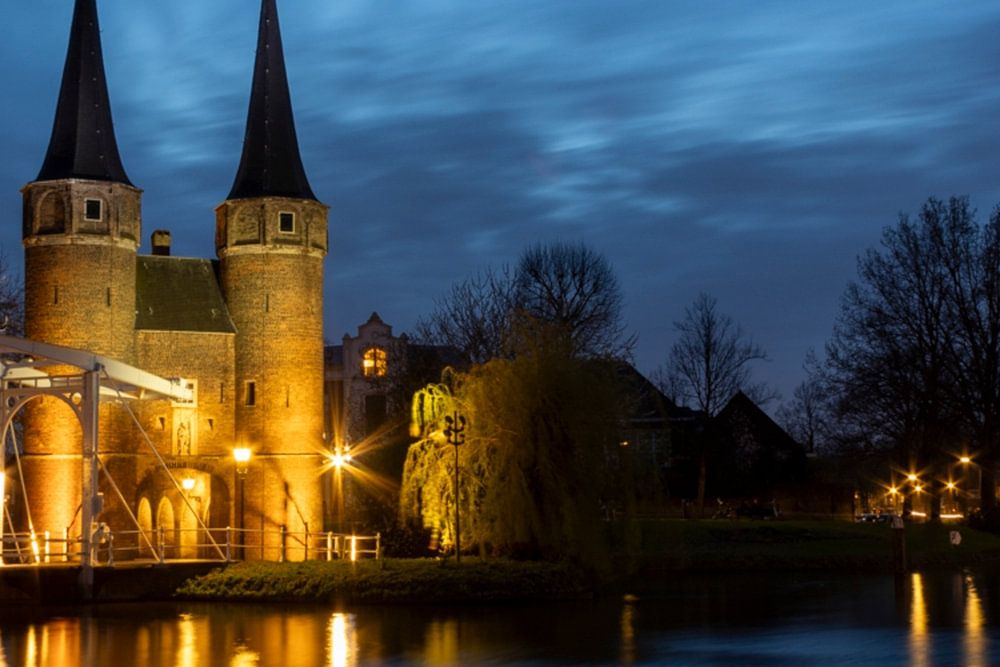 Das Oostpoort in Delft ist das einzige original erhaltene Stadttor der Stadt und damit ein nationales Denkmal. Abends wird das Stadttor mit Lampen beleuchtet, so dass ich dachte, das könnte ein schönes Bild abgeben. Für eine Aufgabe in meinem Fotokurs musste ich auch ein abendliches Stadtbild fotografieren, und dies schien mir wirklich der perfekte Ort und das perfekte Motiv dafür zu sein. Dazu suchte ich mir zunächst einen schönen Aussichtspunkt und wartete dann auf die blaue Stunde und den weiteren Einbruch des Abends. Das Foto wurde mit einer langen Verschlusszeit aufgenommen, so dass das Wasser sehr glatt ist und die Wolken an den Türmen des Stadttors vorbeigleiten. Um dies zu erreichen, habe ich von einem Stativ aus fotografiert. Die Lichter der Straße und der Häuser entlang des Kais auf der rechten Seite und die Reflexion der Lichter im Wasser bilden schöne farbige Elemente auf dem Foto. Das orangefarbene Glühen vor dem blauen Abendhimmel ergibt einen sehr angenehmen Farbkontrast. Im Hintergrund ist die Neue Kirche mit der beleuchteten Kirchenglocke zu sehen. Der wunderschön beleuchtete Oostpoort ist das Prunkstück des Fotos und auch die Oostpoortbrug ist gut zu sehen. Ein sehr vertrauter Ort für jeden Delfter, und dieses schöne Bild des Oostpoort in der Wohnung oder in einem Geschäft mit Delfter Wurzeln wäre ein Schmuckstück für die Wand.