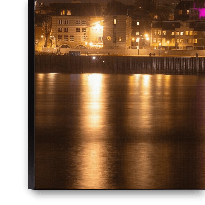 Die Waalkade in Nimwegen strahlt am Abend eine entspannte Atmosphäre aus. Der warme Schein der Straßenlaternen spiegelt sich sanft auf dem Wasser, während sich in der Ferne die Lichter der vorbeifahrenden Schiffe langsam mit der Strömung der Waal bewegen. Die Stadt ist lebendig, aber auf eine ruhige Art und Weise - die Menschen machen…