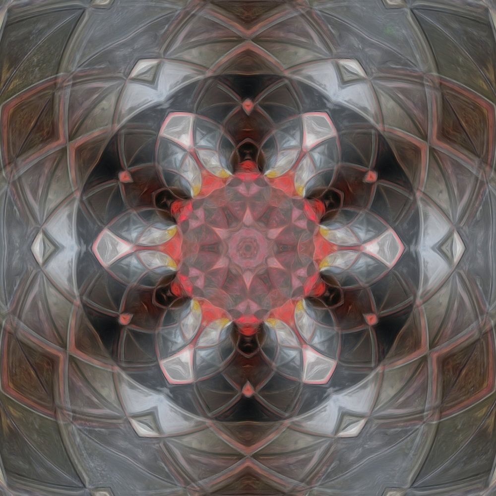 Abstrakte Blumenmuster Mandala digitale Gouache Malerei in rot grau gelb