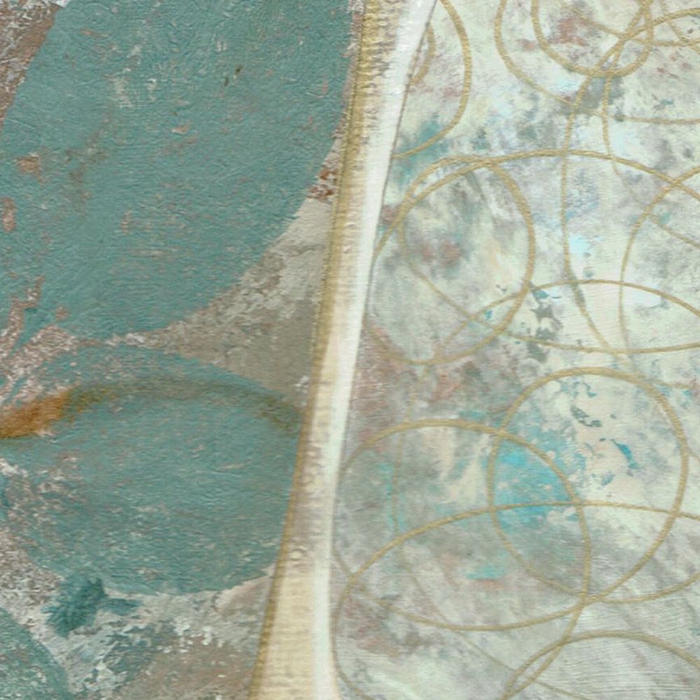 Handgemalte organische Formen in Grau und Türkis mit Elementen in Gold.