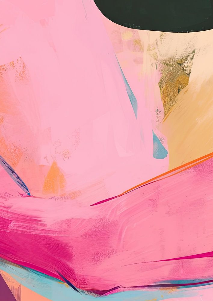 Abstraktes Gemälde | Farbspiel - Dieses abstrakte Gemälde zeigt leuchtende Pinselstriche in Rosa, Blau und Gelb, die in einer dynamischen Komposition mit Form und Textur spielen.