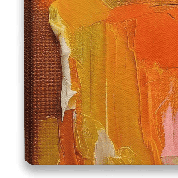 Das Kunstwerk hat einen Leinen-Effekt Hintergrund und zeigt eine Mischung aus warmen und einladenden Farben.