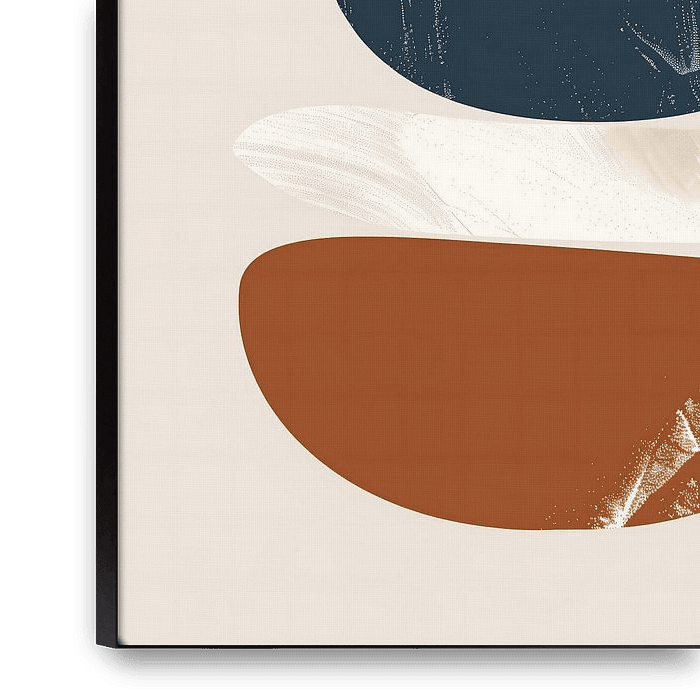 Ein abstraktes Poster mit verschiedenen Formen in weichen, warmen Erdtönen.