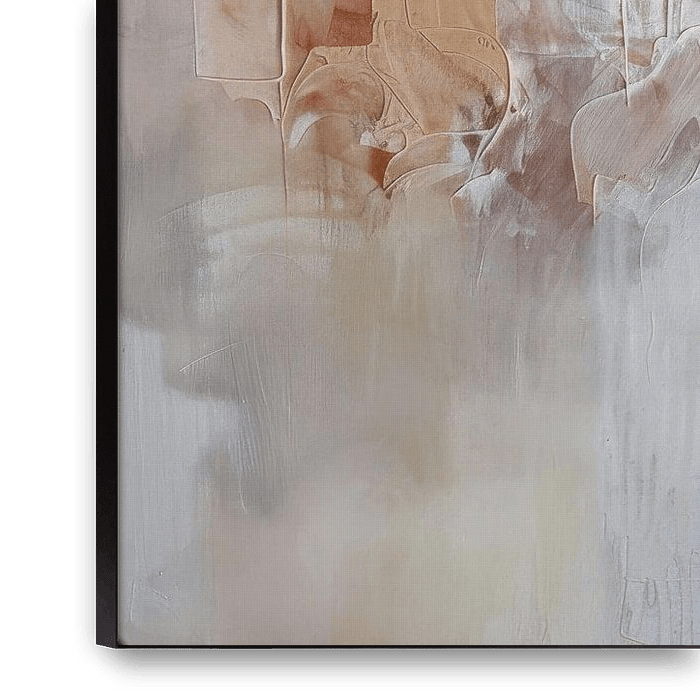 Eine Harmonie aus sanften, neutralen Tönen und warmen Farben verschmelzen zu einer ausdrucksstarken Komposition. Beige, Creme und Gold treffen auf Rosa und Bernstein und schaffen eine ruhige, einladende Atmosphäre. Dieses Werk verleiht jedem Interieur Wärme und Ruhe.