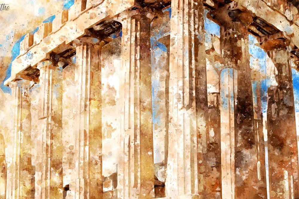Architektur-Illustrationen aus einer Serie der schönsten und bekanntesten Gebäude der Welt. Erstellt mit Wasserfarben und Bleistift auf Aquarellpapier.