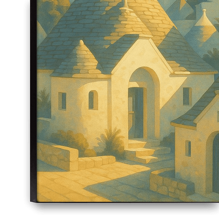 Bestelle dieses Art Deco-Wandbild Alberobello Italien Vintage Wandkunst von Travel Shop als Reproduktion auf Leinwand, Alu-Dibond, als Poster, Fototapete oder Acrylglasbild.