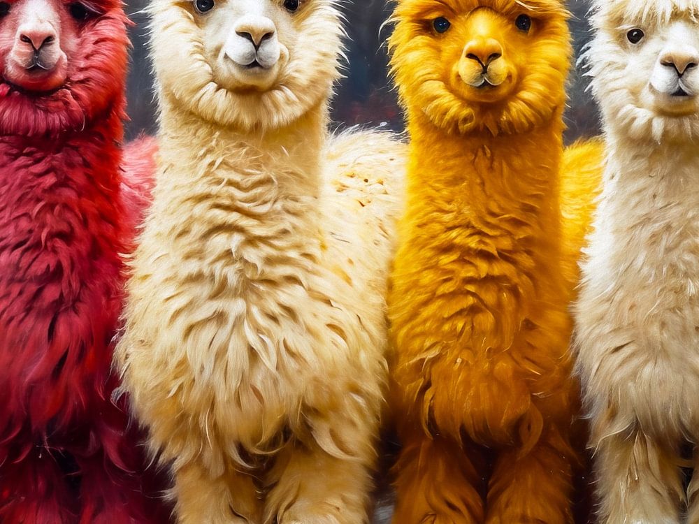 Ein lustiges Wandbild als humorvolle dekorative Kunst für die stilvolle Raumgestaltung - Alpakas lustig und bunt mit Spassfaktor