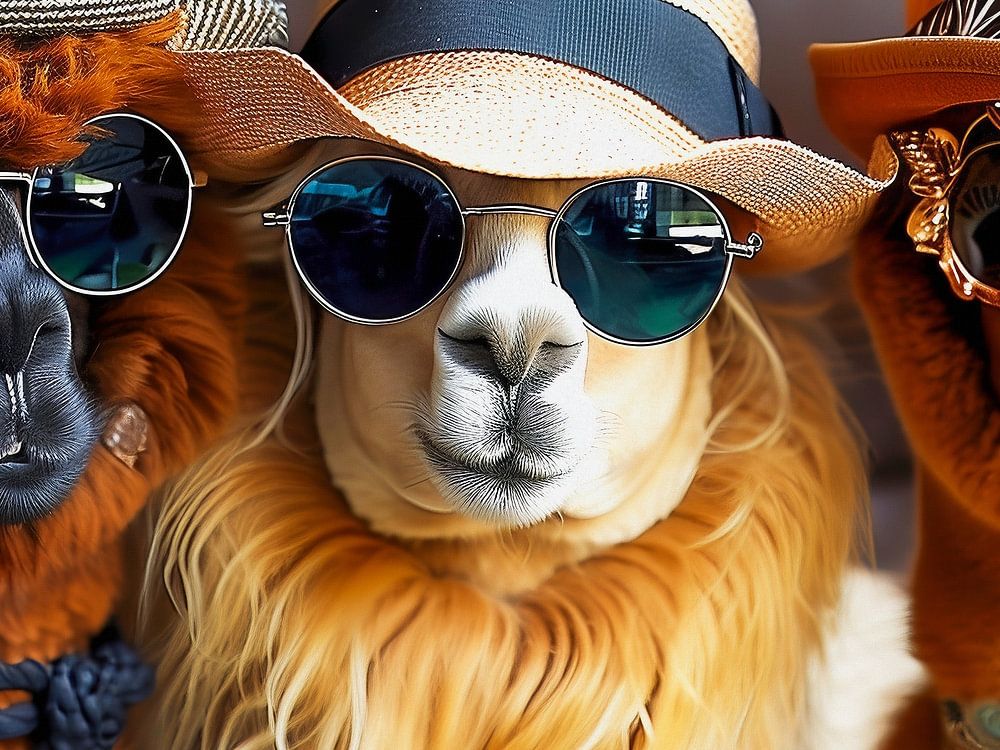 Wenn Alpakas reisen - ein lustiges Wandbild als humorvolle dekorative Kunst zur stilvollen Raumgestaltung.