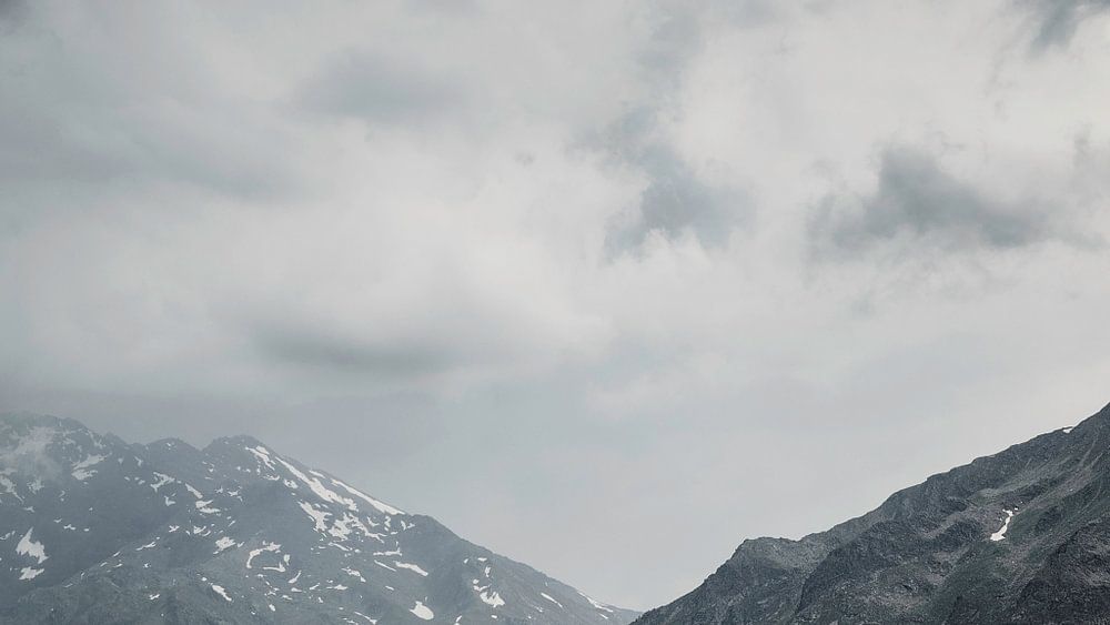 Ein bedrohlicher Himmel hängt über den Bergen von Hochötz / Hochoetz in Tirol.