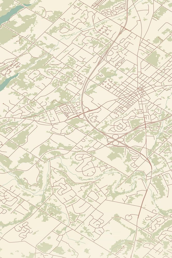 Die Karte ist ein echter Blickfang in Ihrem Zuhause, perfekt für Liebhaber von Vintage-Dekoration. Wälder, Straßen, Seen, Flüsse und Bäche sind mit farbigen Akzenten dargestellt und lassen Sie von der Pracht und Eleganz dieses Ortes staunen.