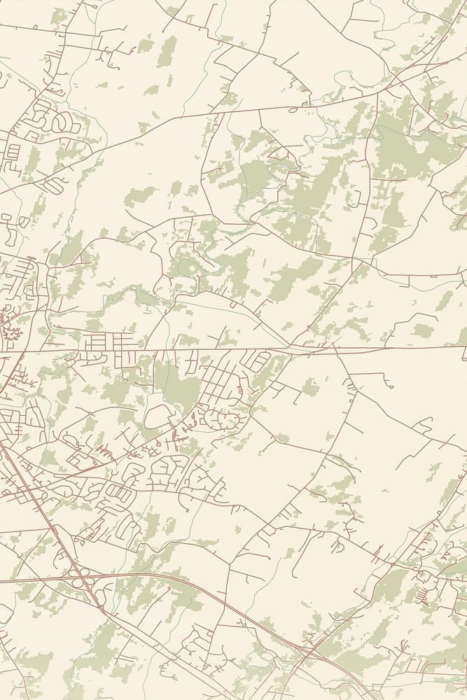Die Karte ist ein echter Blickfang in Ihrem Zuhause, perfekt für Liebhaber von Vintage-Dekoration. Wälder, Straßen, Seen, Flüsse und Bäche sind mit farbigen Akzenten dargestellt und lassen Sie von der Pracht und Eleganz dieses Ortes staunen.