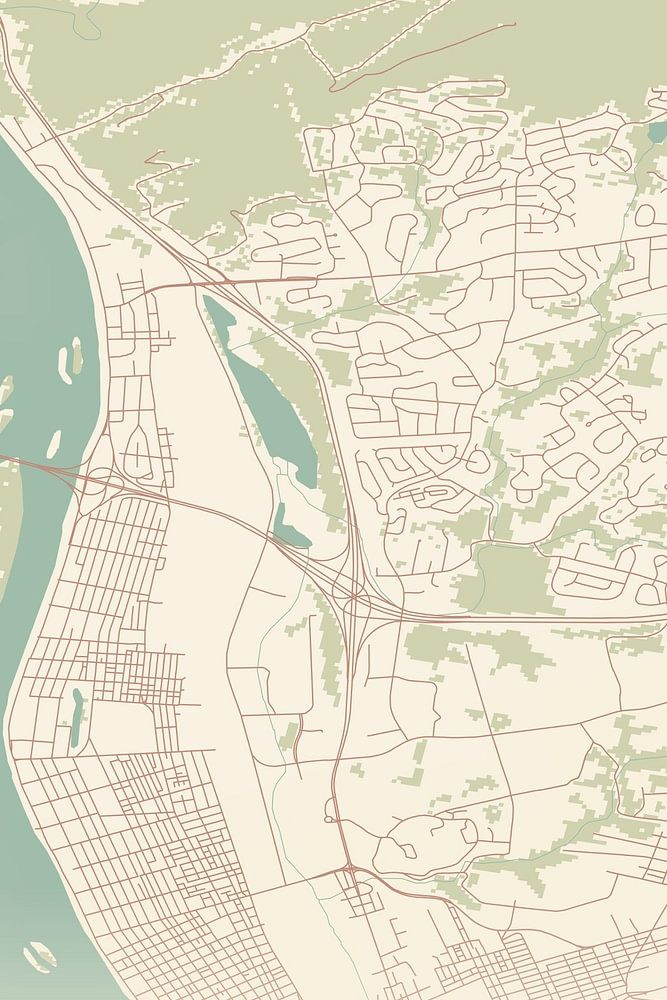 Die Karte ist ein echter Blickfang in Ihrem Zuhause, perfekt für den Liebhaber von Vintage-Dekoration. Wälder, Straßen, Seen, Flüsse und Bäche sind mit farbigen Akzenten illustriert und lassen Sie staunen über die Pracht und Eleganz dieses Ortes.