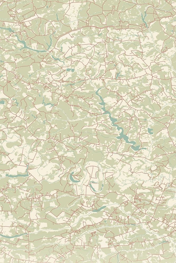 Die Karte ist ein echter Blickfang in Ihrem Zuhause, perfekt für Liebhaber von Vintage-Dekoration. Wälder, Straßen, Seen, Flüsse und Bäche sind mit farbigen Akzenten dargestellt und lassen Sie von der Pracht und Eleganz dieses Ortes staunen.
