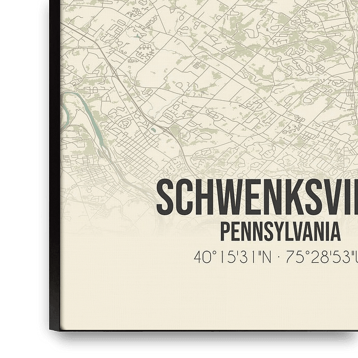 Bestelle diese Illustration Alte Karte von Schwenksville (Pennsylvania), USA. von Ortsdrucke als Reproduktion auf Leinwand, Alu-Dibond, als Poster, Fototapete oder Acrylglasbild.
