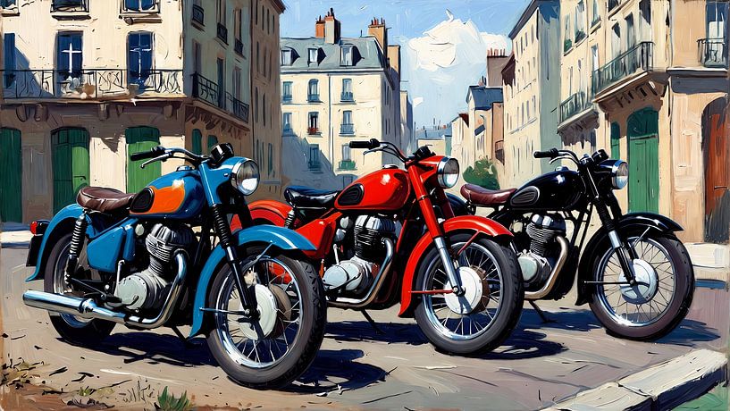 Bestelle das digitale Kunst Bild Alte Motorräder von DeVerviersBelgium als Reproduktion auf Leinwand, Alu-Dibond, als Poster, Fototapete oder Acrylglasbild.