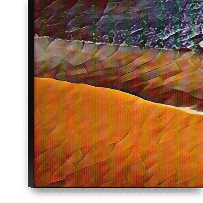 Ihre gewählte Kunst auf Leinwand, gespannt in einem Aluminiumrahmen. Schnell und einfach austauschbar für eine frische Ausstrahlung und ganz nach Ihren Wünschen.