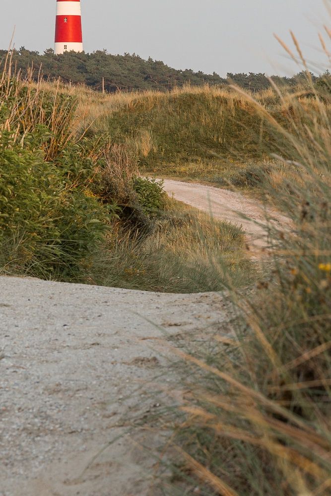 Weg durch die Dünen zum Leuchtturm auf Ameland, Watteninsel der Niederlande.