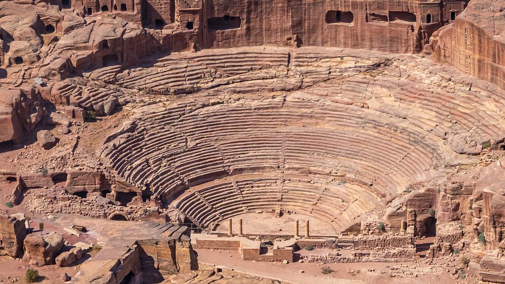 Ein antikes Amphitheater in der antiken Stadt Petra in Jordanien.