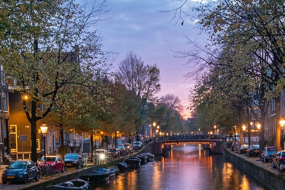 Amsterdam auf der Keizersgracht bei Sonnenuntergang in den Niederlanden