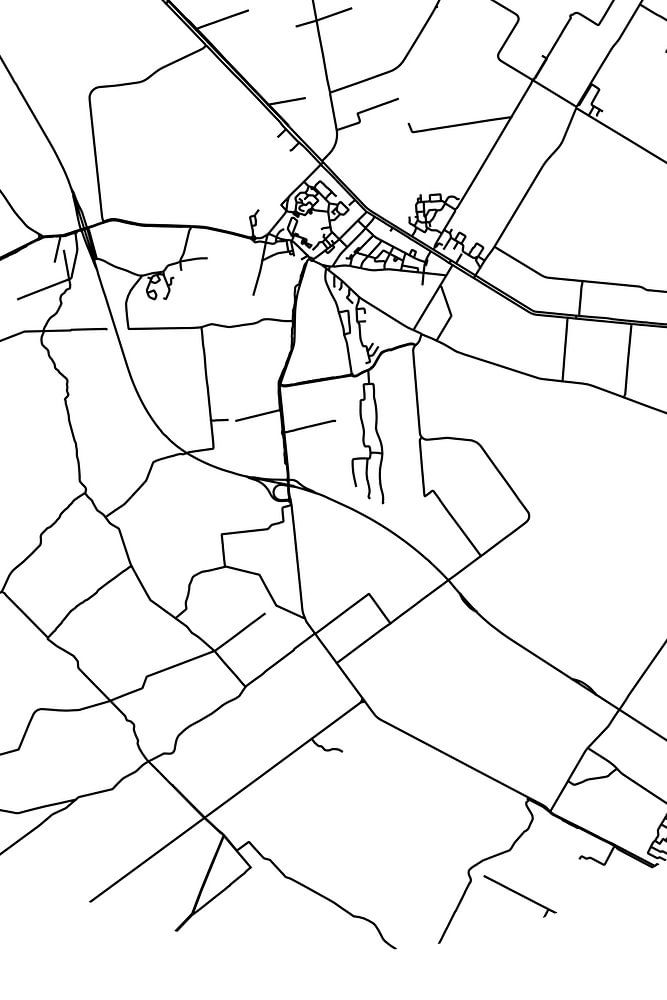 Schwarz-weiße Karte, Straßenkarte oder Straßenplan von Appelscha. Appelscha befindet sich in der Gemeinde Ooststellingwerf, Provinz Fryslan. Der Stadtplan zeigt alle öffentlichen Straßen in Appelscha. Außerdem ist die Karte mit den Koordinaten des Zentrums von Appelscha versehen.
