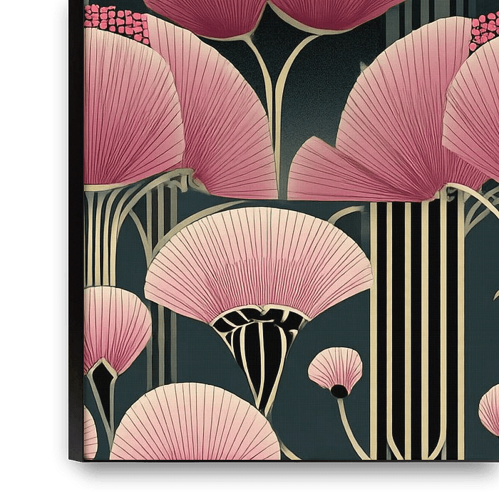 Bestelle dieses Blumen-Wandbild Art Deco Rosa Blumen | Tapete von Karina Brouwer als Reproduktion auf Leinwand, Alu-Dibond, als Poster, Fototapete oder Acrylglasbild.