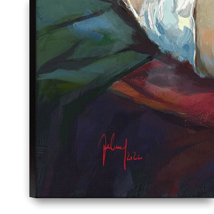 Ihre gewählte Kunst auf Leinwand, gespannt in einem Aluminiumrahmen. Schnell und einfach austauschbar für eine frische Ausstrahlung und ganz nach Ihren Wünschen.