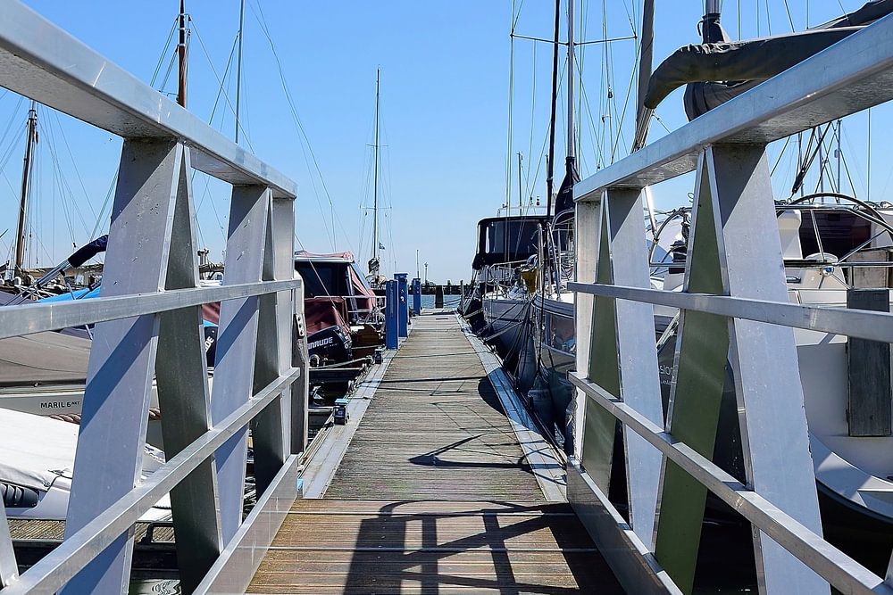 Der alte Hafen in der niederländischen Stadt Volendam dient auch als Jachthafen. Wer ihn besucht, kann mit seiner Yacht anlegen. Hier gehen wir auf den Steg und bewundern einige der Yachten.