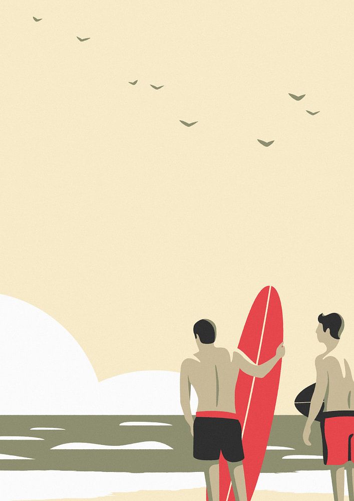 Bestelle diese Illustration Auf die Welle warten von Rene Hamann als Reproduktion auf Leinwand, Alu-Dibond, als Poster, Fototapete oder Acrylglasbild.
