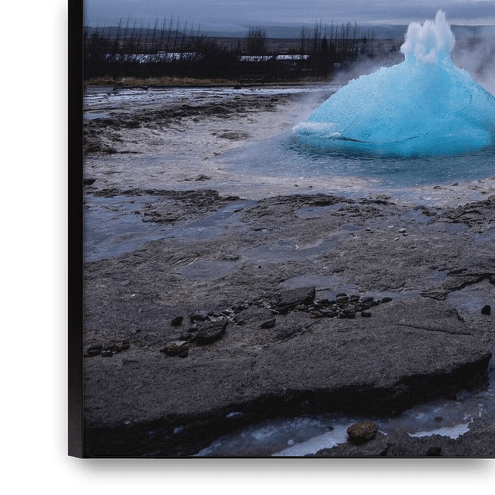 Bestelle das Foto Ausbruch des Strokkur-Geysirs in Island von Patrick Groß als Reproduktion auf Leinwand, Alu-Dibond, als Poster, Fototapete oder Acrylglasbild.
