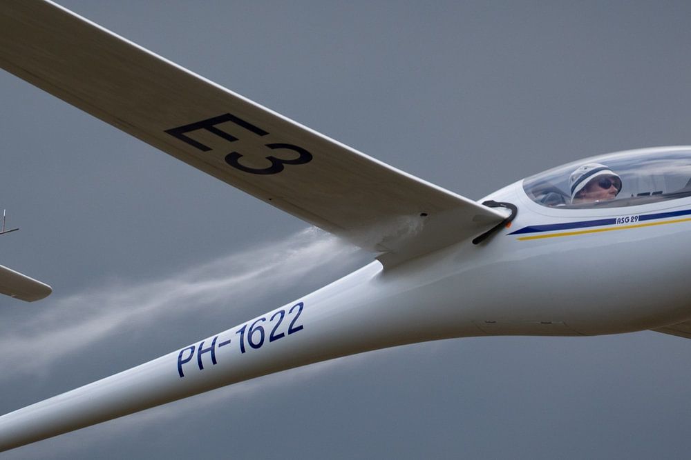 Um hohe Geschwindigkeiten zu erreichen, führen Wettbewerbspiloten Wasserballast mit sich. Das Wasser wird kurz vor der Landung abgelassen. So entsteht ein spannender Effekt, sowohl für den Betrachter als auch auf dem Foto.