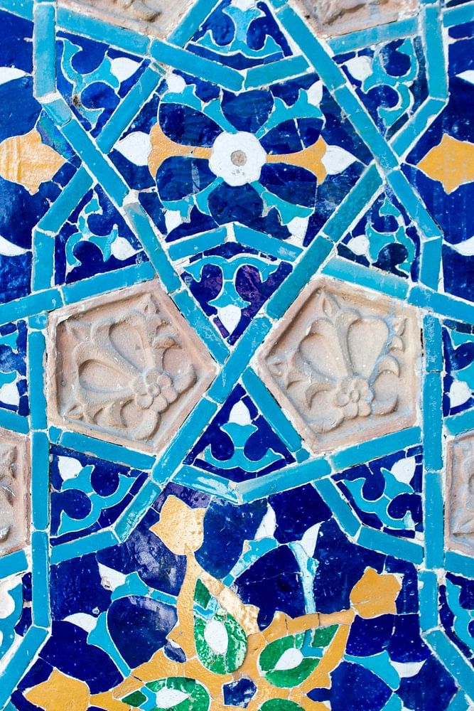 Mosaikwand mit einem arabischen Muster in Gelb, Grün und Blau - Juma-Moschee in Tiflis, Georgien
