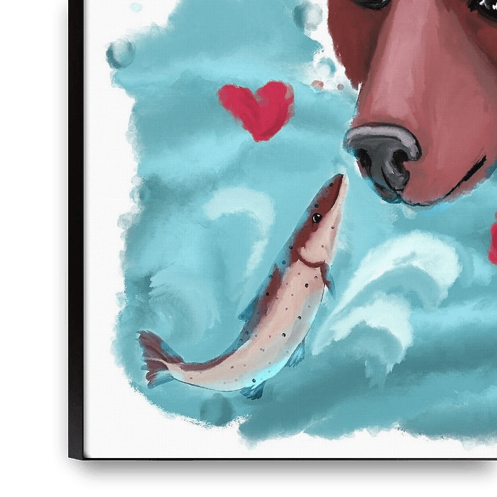 Bestelle dieses abstrakte Wandbild Bär und Lachs - Liebe von Antiope33 als Reproduktion auf Leinwand, Alu-Dibond, als Poster, Fototapete oder Acrylglasbild.