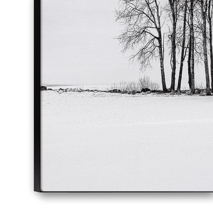 Schnee und Winter faszinieren mich, und ich suche gerne nach Motiven, die ich in dieser weißen Welt schön einfangen kann. Hier sehen wir eine Reihe von Bäumen, die am Rande eines Sees stehen, aber der Schnee lässt sie wie eine durchgehende weiße Decke aussehen.