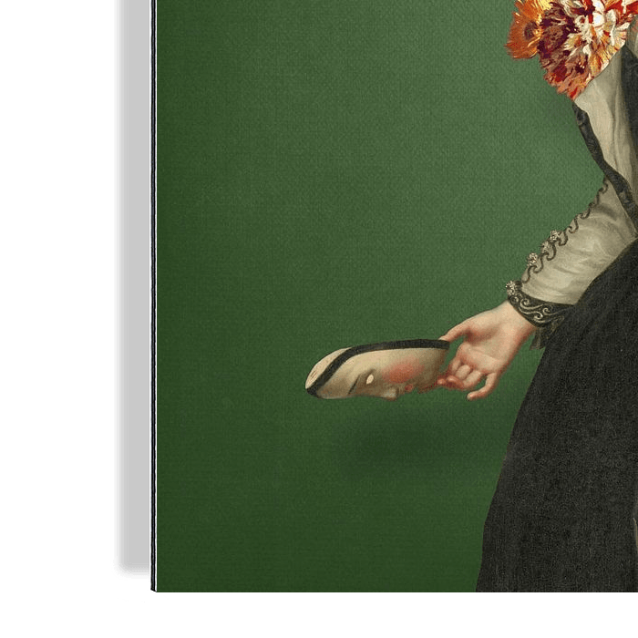 Surrealistisches Porträt einer adligen Dame, die ihr wahres Gesicht zeigt.