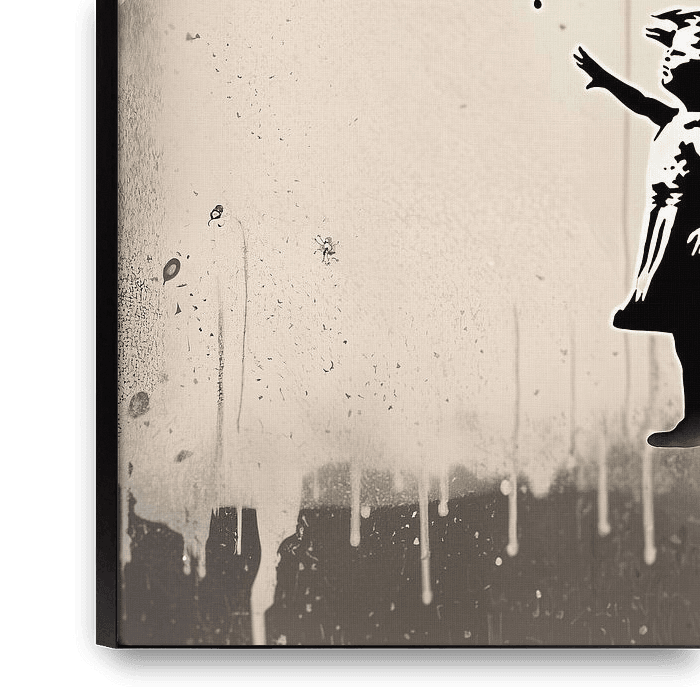 Zu sehen ist ein Mädchen, das einen Luftballon in der Handy hält, im Banksy-Stil.