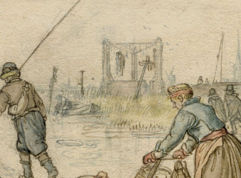 Bauern mit Schlitten auf Eis, Hendrick Avercamp, 1595 - 1634